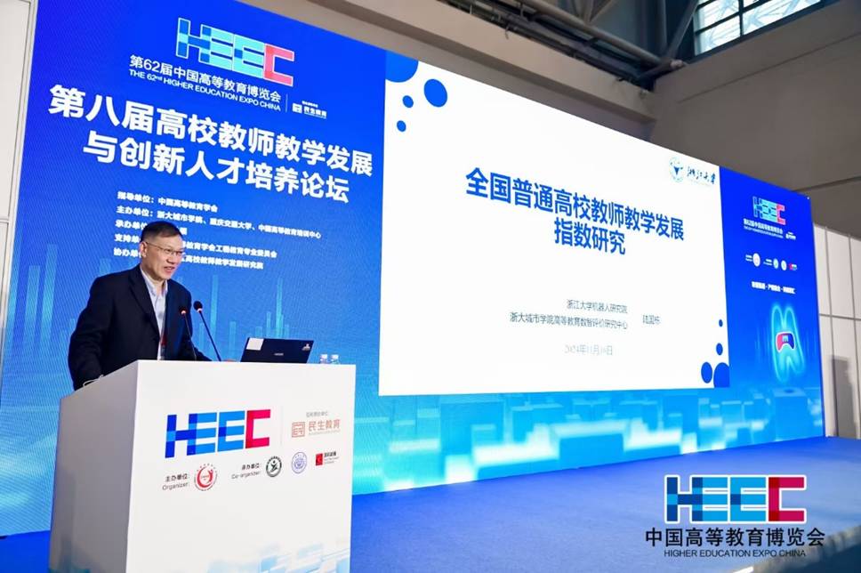 11月16日,第八屆高校教師教學(xué)發(fā)展與創(chuàng)新人才培養(yǎng)論壇在重慶順利召開,論壇是第62屆高等教育博覽會(huì)的組成部分。中國高等教育學(xué)會(huì)副秘書長吳英策,中國高等教育學(xué)會(huì)工程教育專業(yè)委員會(huì)常務(wù)副秘書長、浙江大學(xué)中國科教戰(zhàn)略研究院副院長張煒,中國高等教育學(xué)會(huì)工程教育專業(yè)委員會(huì)秘書長、浙大城市學(xué)院高等教育數(shù)智評(píng)價(jià)研究中心主任陸國棟等300多位專家學(xué)者參與活動(dòng)。大會(huì)第一階段由浙江大學(xué)張煒教授主持。