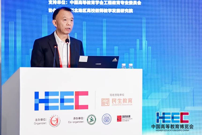 吳英策在致辭中指出黨的二十大報(bào)告首次將教育、科技、人才作為專章闡述并一體部署,明確到2035年建成教育強(qiáng)國、科技強(qiáng)國、人才強(qiáng)國。強(qiáng)調(diào)教師是教育事業(yè)的核心力量,全面深化新時(shí)代教師隊(duì)伍建設(shè)改革,持續(xù)提升高校教師的育人意識(shí)和教育教學(xué)能力,是高素質(zhì)專業(yè)化創(chuàng)新型教師隊(duì)伍建設(shè)的關(guān)鍵一環(huán)。圍繞教師教學(xué)發(fā)展和教師隊(duì)伍建設(shè),他提出四點(diǎn)意見。一要堅(jiān)持立德樹人根本任務(wù)。廣大教師要牢牢把握社會(huì)主義辦學(xué)方向,堅(jiān)持不懈用習(xí)近平新時(shí)代中國特色社會(huì)主義思想鑄魂育人,自覺把社會(huì)主義核心價(jià)值觀貫穿教學(xué)發(fā)展全過程,自覺弘揚(yáng)教育家精神,增強(qiáng)教師教書育人的責(zé)任感和榮譽(yù)感。二要持續(xù)深化教學(xué)改革創(chuàng)新。教學(xué)質(zhì)量是教師的立身之本,也是學(xué)校教育的生命線,推動(dòng)教學(xué)改革創(chuàng)新是提高教育質(zhì)量的關(guān)鍵,廣大教師要緊跟時(shí)代步伐,積極擁抱新技術(shù)、新理念,把數(shù)字化轉(zhuǎn)型作為教學(xué)高質(zhì)量發(fā)展的重要突破口,利用人工智能技術(shù),深化課程體系改革。三要積極構(gòu)建教師教學(xué)發(fā)展成長支持體系。堅(jiān)持把教師隊(duì)伍建設(shè)作為基礎(chǔ)性工作來抓,通過教研培訓(xùn)、教學(xué)競(jìng)賽,推進(jìn)虛擬教研室等學(xué)習(xí)共同體建設(shè),建立完善“傳、幫、帶”機(jī)制,為教師個(gè)性化、常態(tài)化、終身化學(xué)習(xí)提供支持,加快構(gòu)建高水平專業(yè)化的教師教育和發(fā)展體系。四是大力深化教育評(píng)價(jià)改革。教育評(píng)價(jià)事關(guān)教育發(fā)展方向,充分發(fā)揮評(píng)價(jià)“指揮棒”作用,建立更加完善的評(píng)價(jià)體系,引導(dǎo)廣大教師立足教育教學(xué),產(chǎn)出更多高質(zhì)量成果,形成涵蓋教學(xué)、科研、社會(huì)服務(wù)的多通道教師發(fā)展體系。
