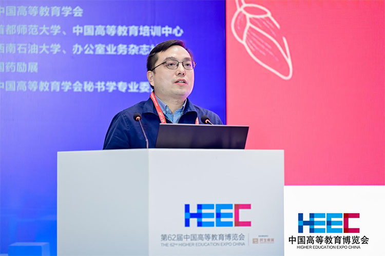 張文忠在致辭中表示,學習貫徹習近平總書記在全國教育大會上的重要講話是高校辦公室主任的重要任務。各高校各單位辦公室主任要深入學習貫徹中央政策精神和教育有關部署,促進辦公室工作全面創(chuàng)新,助力高等教育跨越式高質(zhì)量發(fā)展,為中國式現(xiàn)代化做出新的貢獻。他提出五點希望:第一,完善內(nèi)部治理,加強辦事機構建設,推動專委會自身規(guī)范化發(fā)展。第二,堅持“學術立會”,不斷提升秘書學科的學術地位和社會影響力。第三,推動“服務興會”,有效提升高質(zhì)量社會服務能力。第四,踐行“創(chuàng)新強會”,全面深化教育綜合改革力度,以實踐活動和培訓為抓手,有效發(fā)揮橋梁紐帶作用,更廣泛深入團結引領各理事成員及單位。