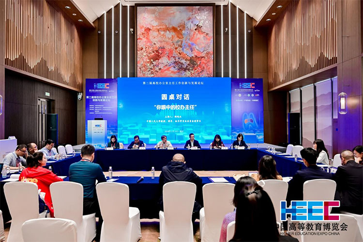 論壇期間還舉辦了圓桌對話,由胡鴻杰主持,與會嘉賓和參會代表圍繞“你眼中的校辦主任”進行了深入研討交流。