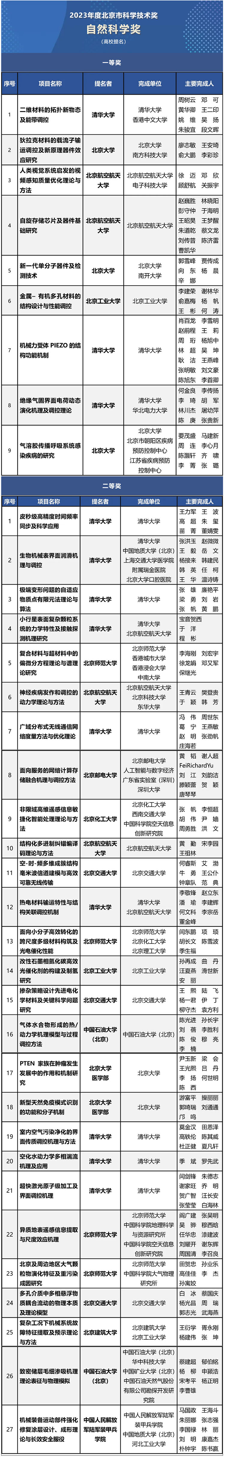 近日,2023年度北京市科學(xué)技術(shù)獎(jiǎng)?wù)焦迹?9位科學(xué)家、196項(xiàng)成果獲獎(jiǎng)。其中,北京部分高校提名的多個(gè)項(xiàng)目成果榮獲獎(jiǎng)項(xiàng),一起來看: