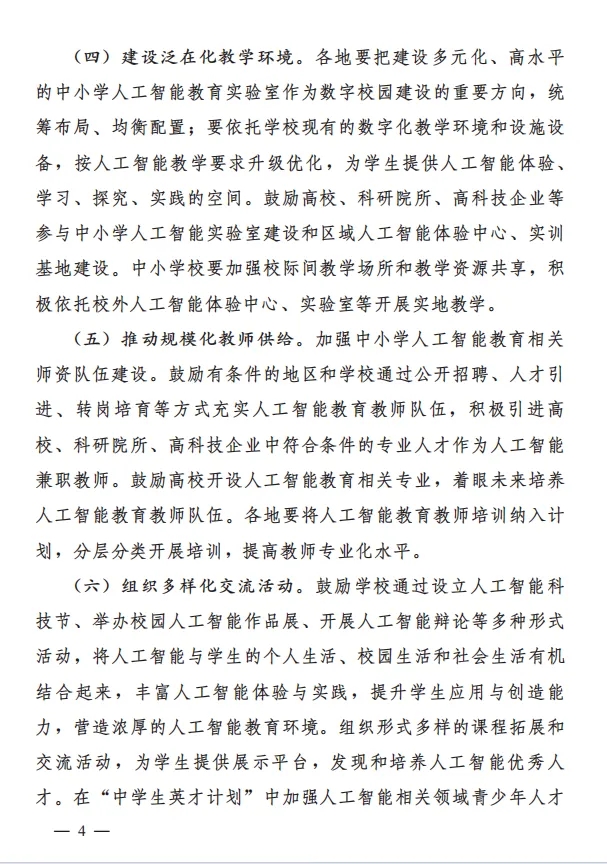 推動(dòng)高校、科研院所和高科技企業(yè)的AI場(chǎng)館向中小學(xué)校開放。