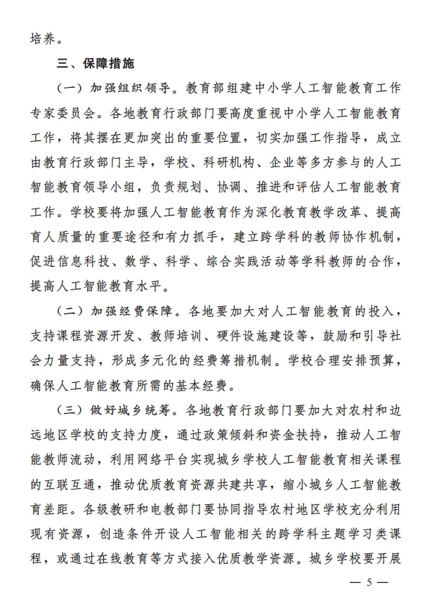 4. 統(tǒng)籌謀劃:加強(qiáng)頂層設(shè)計(jì)和部門協(xié)同,2030年前在中小學(xué)基本普及AI教育。