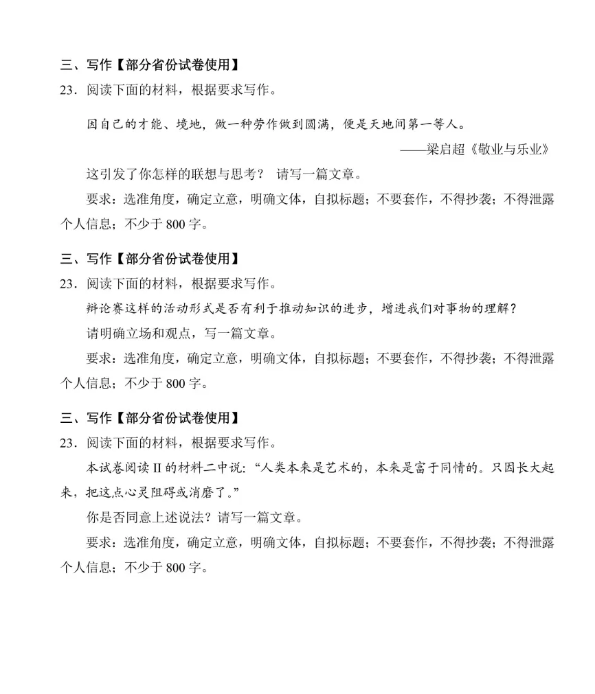 2025年,山西、河南、陜西、內(nèi)蒙古、四川、云南、寧夏、青海等第五批高考綜合改革省、自治區(qū)將實(shí)現(xiàn)首考落地,為實(shí)現(xiàn)平穩(wěn)過渡,相關(guān)省份組織了適應(yīng)性演練。語文科適應(yīng)性測試題由教育部教育考試院依據(jù)高校人才選拔要求和《普通高中語文課程標(biāo)準(zhǔn)(2017年版2020年修訂)》命制,可供依據(jù)《普通高中語文課程標(biāo)準(zhǔn)(2017年版2020年修訂)》教學(xué)、使用高考全國卷的省(自治區(qū)、直轄市)參考借鑒。