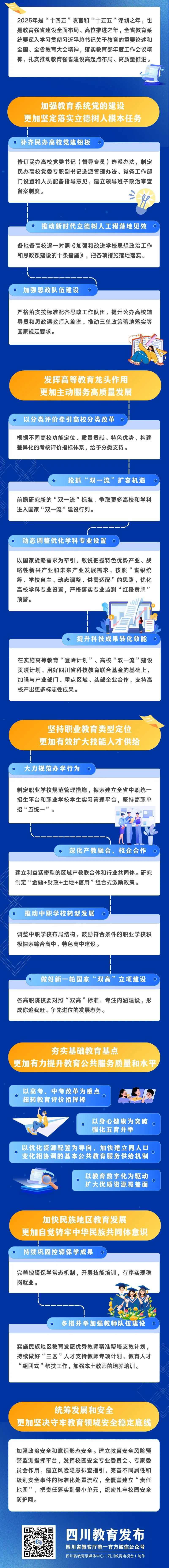 會(huì)議強(qiáng)調(diào),2025年是“十四五”收官和“十五五”謀劃之年,要在攻堅(jiān)破難中緊抓關(guān)鍵,準(zhǔn)確把握教育強(qiáng)省建設(shè)的實(shí)踐路徑。要加強(qiáng)教育系統(tǒng)黨的建設(shè),補(bǔ)齊民辦高校黨建短板,實(shí)施新時(shí)代立德樹(shù)人工程,加強(qiáng)思政隊(duì)伍建設(shè),更加堅(jiān)定落實(shí)立德樹(shù)人根本任務(wù)。要發(fā)揮高等教育龍頭作用,以分類評(píng)價(jià)牽引高校分類改革,搶抓“雙一流”擴(kuò)容機(jī)遇,動(dòng)態(tài)調(diào)整優(yōu)化學(xué)科專業(yè)設(shè)置,提升科技成果轉(zhuǎn)化效能,更加主動(dòng)服務(wù)高質(zhì)量發(fā)展。要堅(jiān)持職業(yè)教育類型定位,大力規(guī)范辦學(xué)行為,深化產(chǎn)教融合、校企合作,推動(dòng)中職學(xué)校轉(zhuǎn)型發(fā)展,做好新一輪國(guó)家“雙高”立項(xiàng)建設(shè),更加有效擴(kuò)大技能人才供給。要夯實(shí)基礎(chǔ)教育基點(diǎn),以高考、中考改革為重點(diǎn),扭轉(zhuǎn)教育評(píng)價(jià)指揮棒;以身心健康為突破,強(qiáng)化五育并舉;以優(yōu)化資源配置為導(dǎo)向,加快建立同人口變化相協(xié)調(diào)的基本公共教育服務(wù)供給機(jī)制;以教育數(shù)字化為驅(qū)動(dòng),擴(kuò)大優(yōu)質(zhì)資源覆蓋面,更加有力提升教育公共服務(wù)質(zhì)量和水平。要加快民族地區(qū)教育發(fā)展,持續(xù)鞏固控輟保學(xué)成果,多措并舉加強(qiáng)教師隊(duì)伍建設(shè),更加自覺(jué)鑄牢中華民族共同體意識(shí)。要統(tǒng)籌發(fā)展和安全,提升安全工作專業(yè)性、預(yù)見(jiàn)性,把責(zé)任落實(shí)到最小單元,確保政治安全和意識(shí)形態(tài)安全,更加堅(jiān)決守牢教育領(lǐng)域安全穩(wěn)定底線。