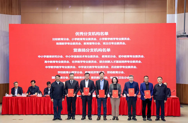 會(huì)上,公布了中國(guó)教育學(xué)會(huì)2024年度優(yōu)秀分支機(jī)構(gòu)名單。楊銀付宣讀了《中國(guó)教育學(xué)會(huì)關(guān)于公布2024年度優(yōu)秀分支機(jī)構(gòu)的決定》。經(jīng)學(xué)會(huì)考核委員會(huì)集體評(píng)審,學(xué)會(huì)比較教育分會(huì)、小學(xué)教育專(zhuān)業(yè)委員會(huì)、小學(xué)數(shù)學(xué)教學(xué)專(zhuān)業(yè)委員會(huì)、地理教學(xué)專(zhuān)業(yè)委員會(huì)、教育督導(dǎo)分會(huì)、班主任專(zhuān)業(yè)委員會(huì)等6個(gè)分支機(jī)構(gòu)被評(píng)定為“優(yōu)秀分支機(jī)構(gòu)”,并對(duì)在方向引領(lǐng)、品牌建設(shè)、規(guī)范管理、隊(duì)伍建設(shè)、學(xué)術(shù)成果、服務(wù)質(zhì)量等方面表現(xiàn)比較突出的17個(gè)分支機(jī)構(gòu)予以表?yè)P(yáng)。中國(guó)教育學(xué)會(huì)會(huì)長(zhǎng)朱之文、顧問(wèn)鄭富芝共同為學(xué)會(huì)2024年度優(yōu)秀分支機(jī)構(gòu)頒發(fā)證書(shū)。