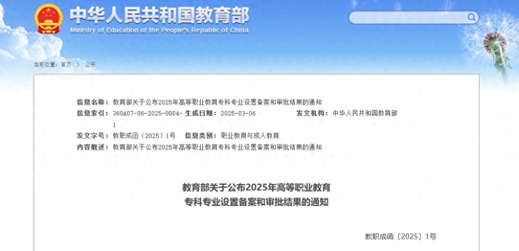 近日,教育部發(fā)布《關(guān)于公布2025年高等職業(yè)教育專科專業(yè)設(shè)置備案和審批結(jié)果的通知》,教育部已組織完成了2025年高等職業(yè)教育??茖I(yè)設(shè)置備案和審批相關(guān)工作。經(jīng)省級教育行政部門備案并在教育部匯總的2025年擬招生專業(yè)點共67898個,備案結(jié)果可在全國職業(yè)院校專業(yè)設(shè)置管理與公共信息服務(wù)平臺查詢。