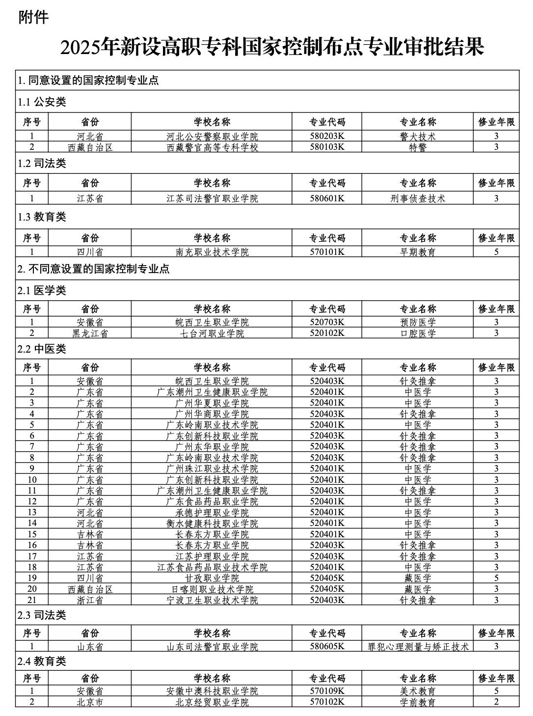 此外,教育部共受理2025年擬新設(shè)國家控制布點專業(yè)申請72個,經(jīng)會同公安部、司法部、國家衛(wèi)生健康委、國家中醫(yī)藥管理局等行業(yè)主管部門審核,同意設(shè)置專業(yè)點4個,不同意設(shè)置專業(yè)點68個。