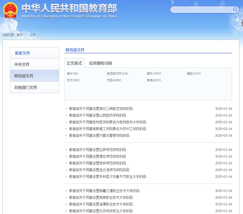 日前,教育部公布了一批高等學校設置審批、備案結(jié)果。據(jù)統(tǒng)計,本批次教育部共同意15所??聘呗氃盒U缴駷楸究茖哟卧盒?。