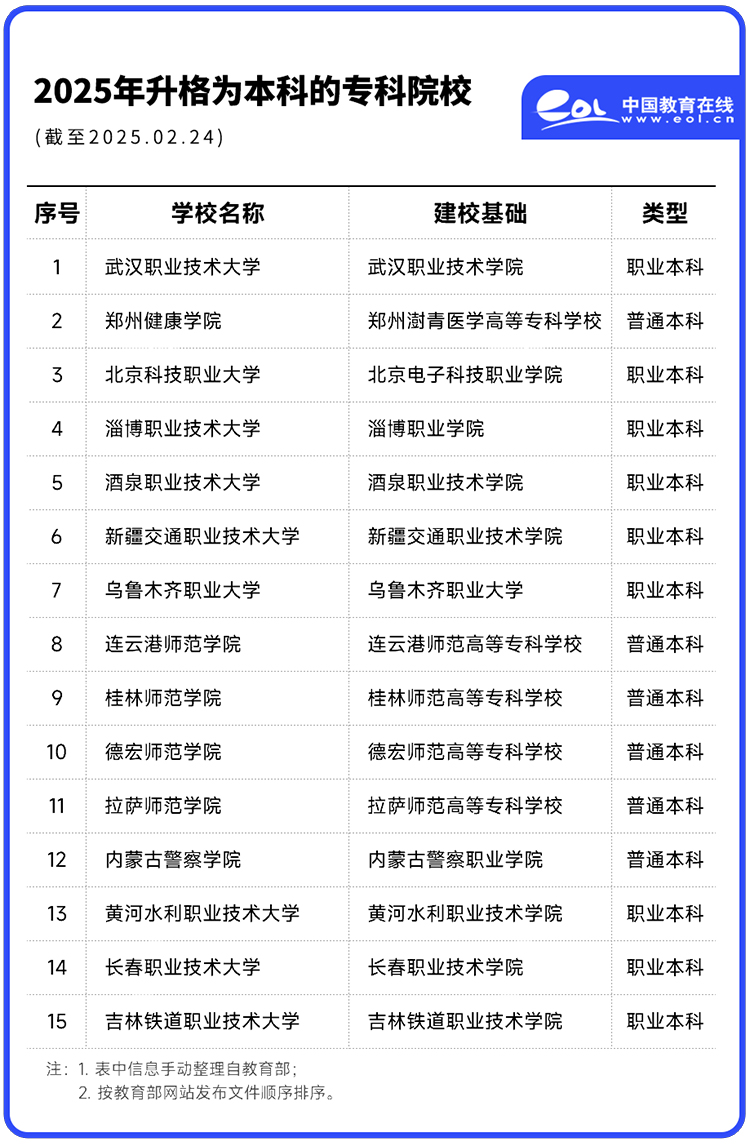 15所院校中,9所升格為職業(yè)本科,6所升格為普通本科。至此,全國共有60所本科層次職業(yè)院校。