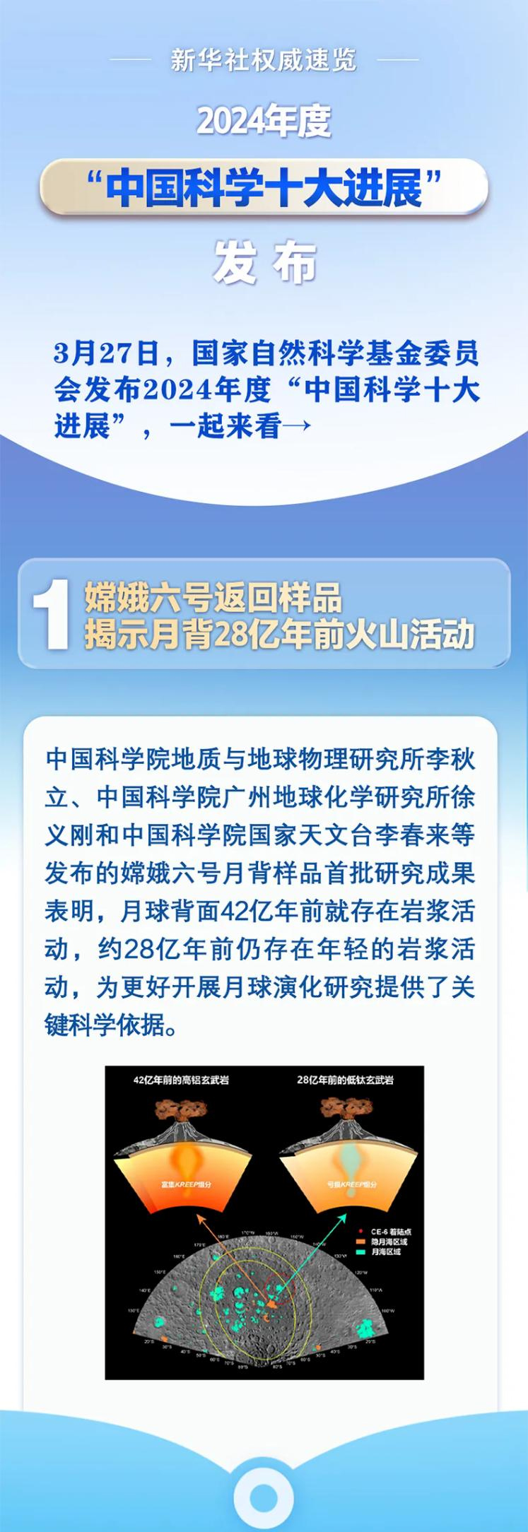 2025年3月27日,國家自然科學(xué)基金委員會黨組書記、主任竇賢康在2025中關(guān)村論壇年會開幕式上發(fā)布了2024年度“中國科學(xué)十大進展”,分別為:
