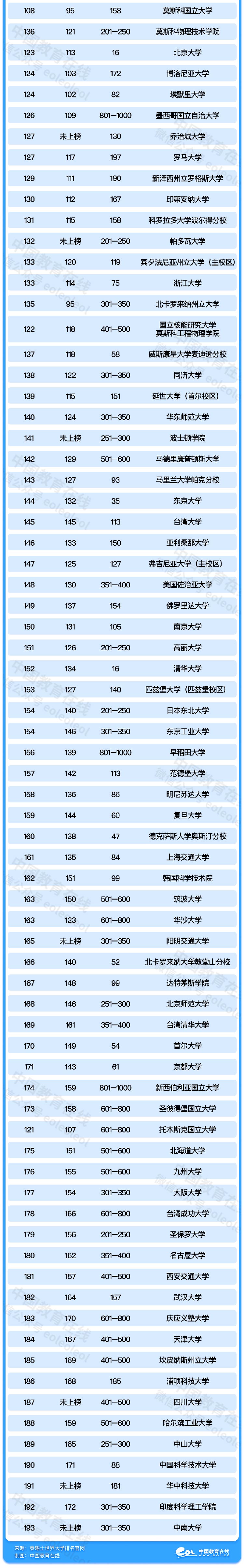中國大學(xué)今年表現(xiàn)突出,其中,中國內(nèi)地共有18所大學(xué)上榜,北京大學(xué)、浙江大學(xué)、同濟大學(xué)、華東師范大學(xué)、南京大學(xué)、清華大學(xué)、復(fù)旦大學(xué)、上海交通大學(xué)、北京師范大學(xué)等位居榜單前列。