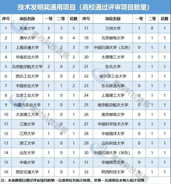 在獲得本年度該獎項通過項目的32所高校中,東南大學、清華大學、上海交通大學等3所高校以獲通過評審項目5個、4個、3個的優(yōu)異表現(xiàn),數(shù)量上穩(wěn)居前三。