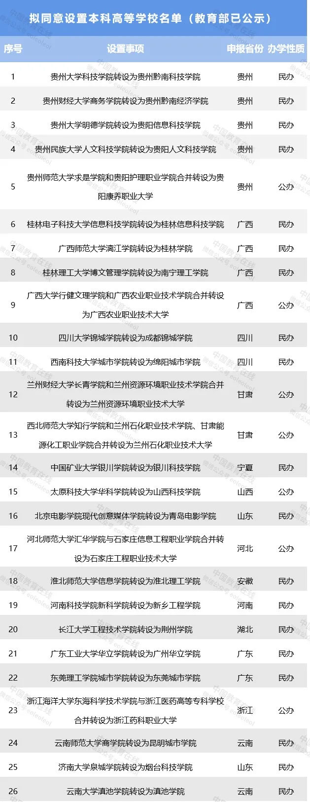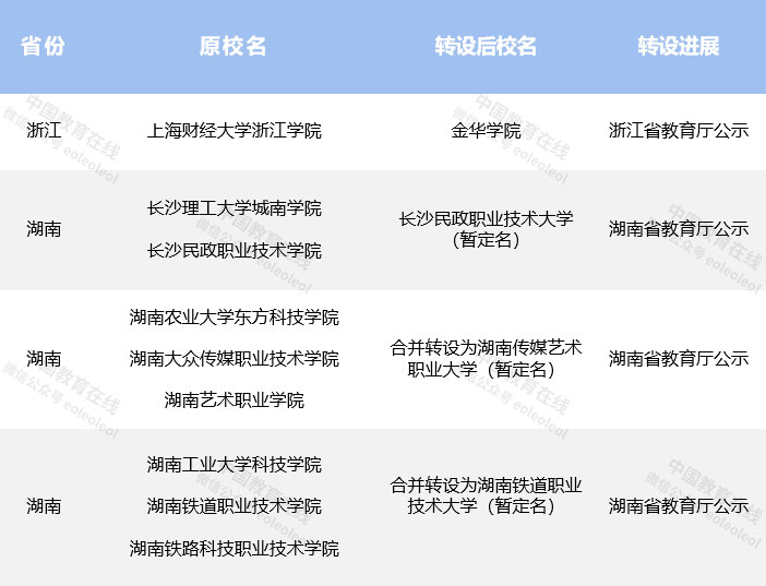部分高校轉(zhuǎn)設申請已獲省級教育廳公示