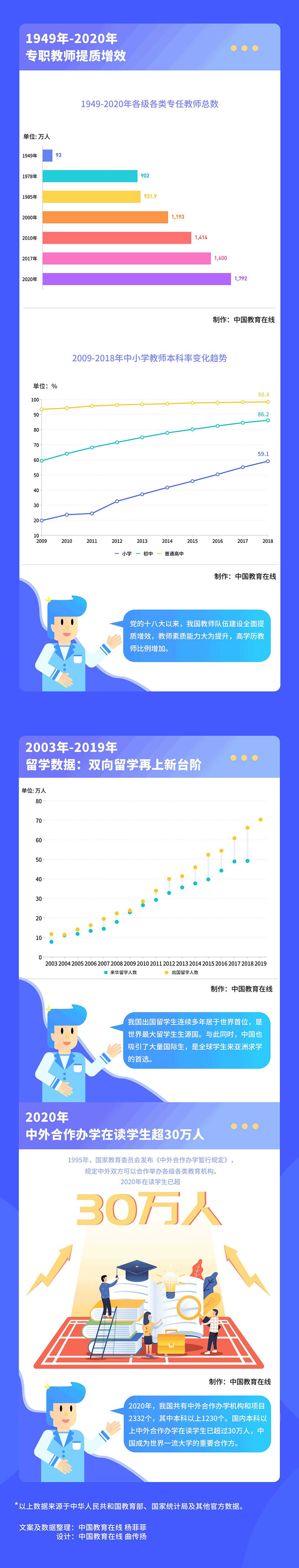 2020年,各級各類專任教師達(dá)到1792.18萬人。比1949年增加了1698.75萬人。