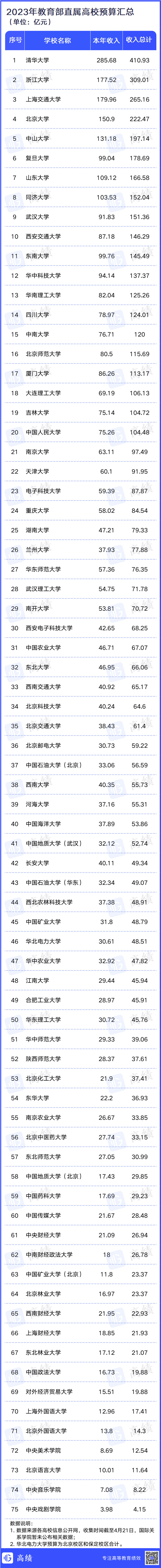 據(jù)統(tǒng)計(jì),教育部直屬高校中共有20所高校,2023年度部門(mén)預(yù)算超過(guò)百億,相比2022年增加了5所。