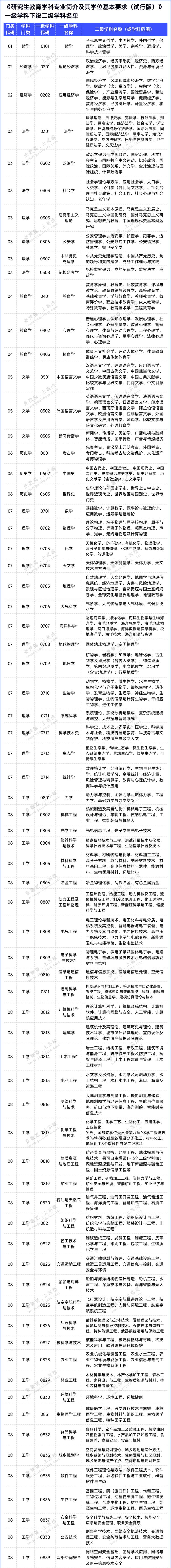 3. 法學(xué)門類中的0304民族學(xué)和軍事學(xué)門類的所有一級(jí)學(xué)科,該文件沒有學(xué)科簡(jiǎn)介和二級(jí)學(xué)科說明,暫空缺。