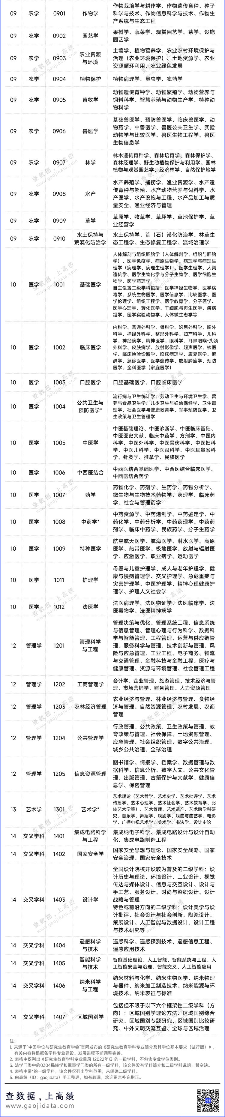2. 表格中僅列出《研究生教育學(xué)科專業(yè)目錄 (2022年)》的一級(jí)學(xué)科,不包含專業(yè)學(xué)位類別。