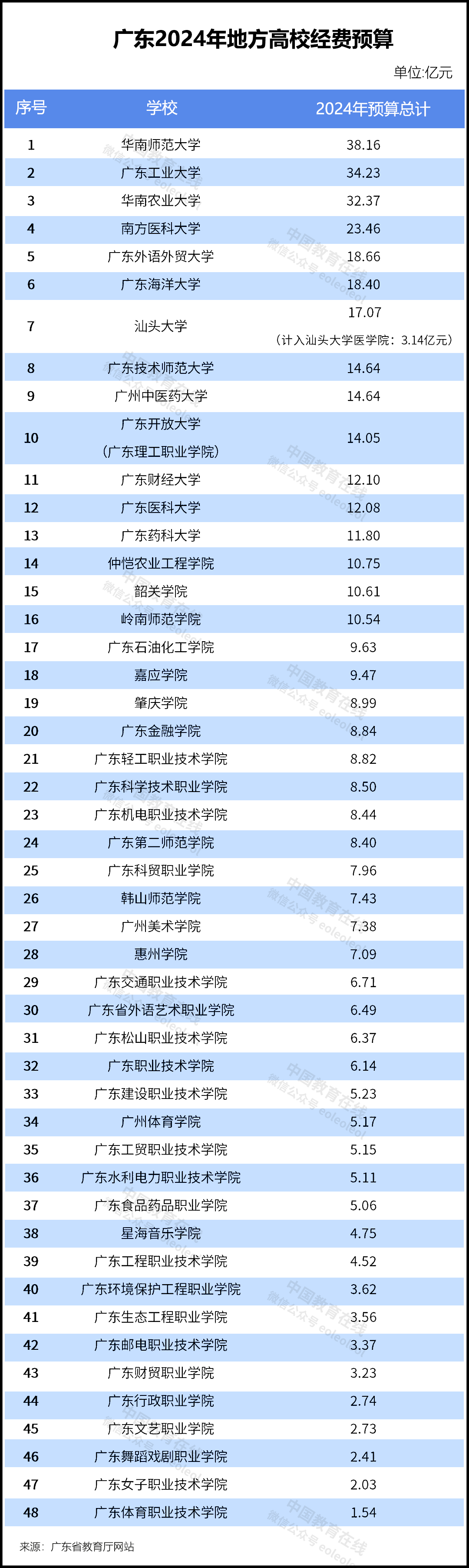 近日,廣東省教育廳網站公開2024年所屬單位預算信息。在48所省屬高校中,3所高校2024年預算超過30億元。