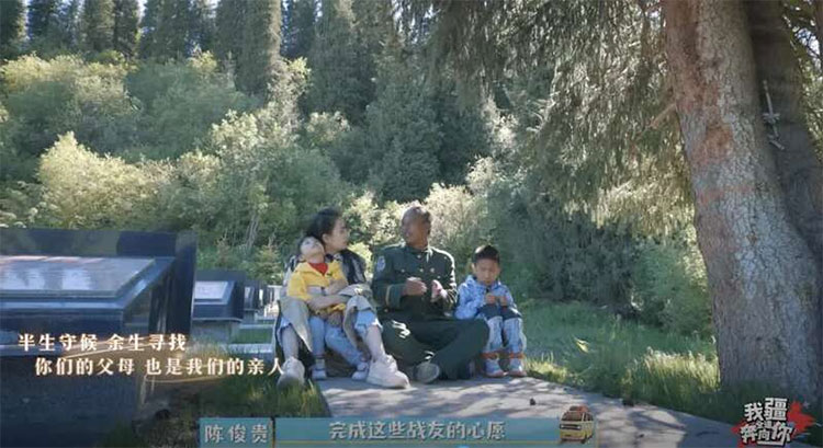在喬爾瑪烈士陵園里,兄妹倆陪著爸爸認真地干活。當掃到鄭林書的墓碑前時,哥哥陳煜昊小聲向賀瑤講起了鄭林書爺爺?shù)墓适隆?/p>