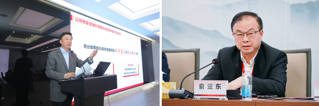 教育部思政課總教指委主任、民辦高校思政課分教指委主任楊曉慧,中國(guó)民辦教育協(xié)會(huì)黨建專委會(huì)理事長(zhǎng)俞亞東講話