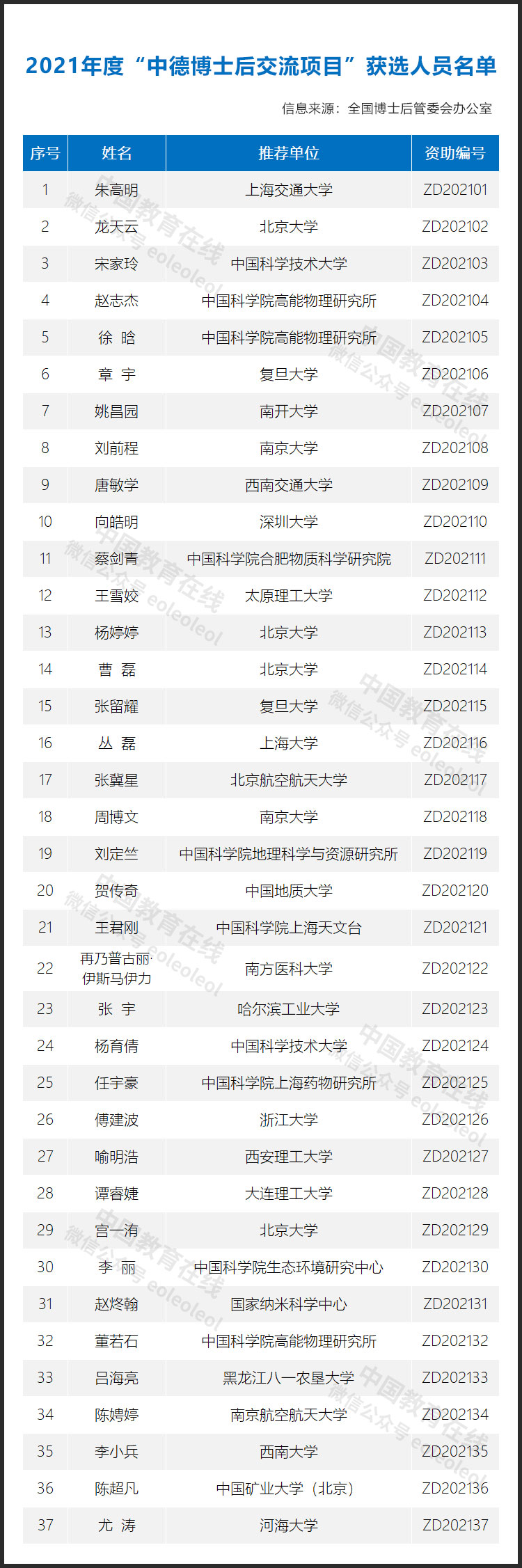 2021年度“中德博士后交流項(xiàng)目”獲選人員: