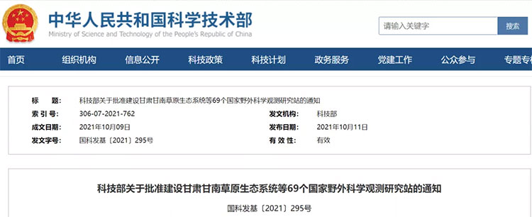 近日,科技部發(fā)布了關(guān)于批準(zhǔn)建設(shè)甘肅甘南草原生態(tài)系統(tǒng)等69個(gè)國(guó)家野外科學(xué)觀測(cè)研究站的通知。
