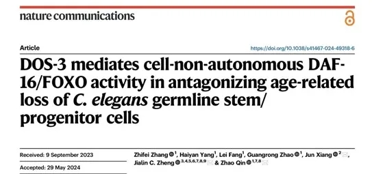 全球老齡化不斷加劇,如何延緩衰老、促進健康衰老,需要對衰老這一生理過程進行更深入的探索。醫(yī)學院、附屬同濟醫(yī)院秦昭、鄭加麟、相俊團隊研究發(fā)現(xiàn)一個非經(jīng)典的Notch配體DOS-3介導PSG細胞中的DAF-16/FOXO活性以拮抗線蟲生殖干細胞隨年齡的衰減,研究對于解析生殖衰老和干細胞衰老的機制具有廣泛意義。該研究成果發(fā)表于《自然·通訊》(Nature Communications)。