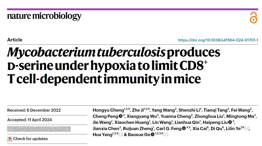 由結(jié)核分枝桿菌感染引起的結(jié)核病(Tuberculosis, TB)仍然是嚴重威脅人類健康的重大傳染性疾病之一。醫(yī)學院戈寶學、楊華團隊合作研究發(fā)現(xiàn)了結(jié)核桿菌逃避CD8+ T細胞免疫清除新機制,針對結(jié)核分枝桿菌關(guān)鍵代謝通路開發(fā)抗結(jié)核藥物和疫苗提供了新的見解和潛在靶點。該研究成果在線發(fā)表于《自然·微生物學》(Nature Microbiology)。