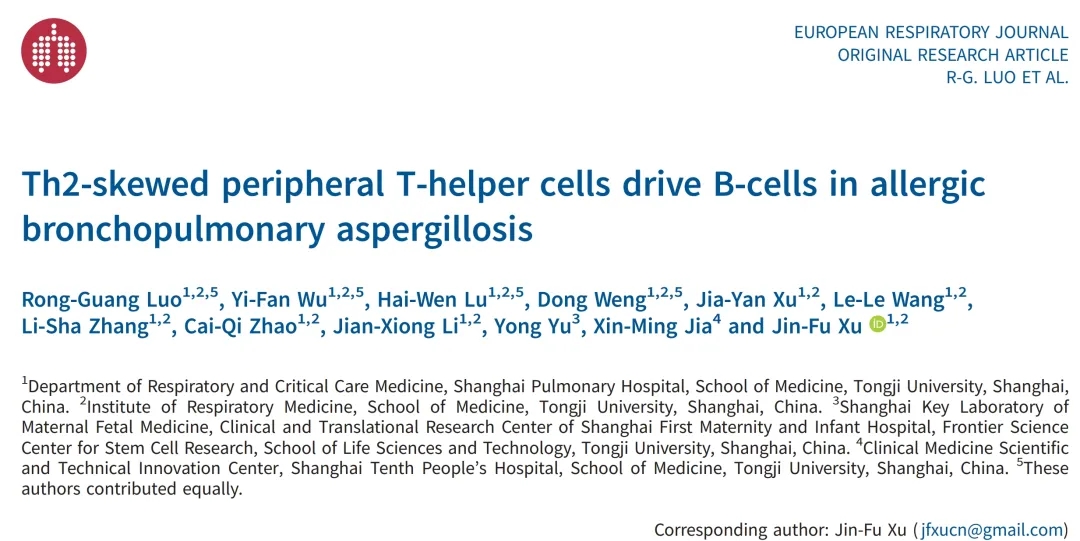 變應性支氣管肺曲霉病(allergic bronchopulmonary aspergillosis,簡稱ABPA)常存在于支氣管哮喘及支氣管擴張癥患者中。醫(yī)學院、附屬上海市肺科醫(yī)院徐金富團隊經(jīng)對ABPA患者多年的跟蹤隨訪和探索,發(fā)現(xiàn)一群外周輔助性T細胞在ABPA的發(fā)生和加重中起關(guān)鍵作用,該群細胞可能成為ABPA未來精準治療的靶點。該研究成果發(fā)表于《歐洲呼吸雜志》(European Respiratory Journal),并被同期配發(fā)述評。
