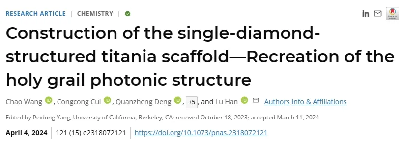 單金剛石(SD)曲面結(jié)構(gòu)具有卓越的光學特性,在諸如光子晶體、光捕獲應用等領(lǐng)域中具有廣泛的應用前景?;瘜W科學與工程學院韓璐團隊通過在自組裝過程中引入動力學和熱力學的雙重協(xié)同調(diào)控作用,實現(xiàn)了一步法對這種熱力學亞穩(wěn)態(tài)SD結(jié)構(gòu)的高效制備。相關(guān)研究成果發(fā)表于《美國科學院院刊》(Proceedings of the National Academy of Sciences of the United States of America,PNAS)。