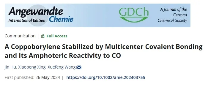 硼賓(:B–R),通常只能存在于氣相或低溫惰性基質(zhì)等極端條件下,建立在B–M共價單鍵基礎(chǔ)上的金屬化硼賓化合物被長期忽略?;瘜W科學與工程學院王雪峰和邢小鵬團隊提出金屬化硼賓概念,并利用B易于形成多中心鍵的性質(zhì),開創(chuàng)性地設(shè)計了硼賓的多中心共價鍵穩(wěn)定策略。相關(guān)成果在線發(fā)表于國際知名期刊《德國應用化學》(Angewandte Chemie International Edition)。