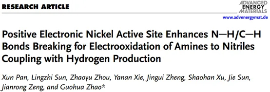 氫能有望成為化石燃料的理想替代品,但是陽極處緩慢的析氧反應極大地抑制了電解水制氫的效率?;瘜W科學與工程學院趙國華團隊發(fā)展了一種促進N-H/C-H鍵斷裂以實現(xiàn)高效電解水制氫的方法,實現(xiàn)了電氧化胺到腈的完全轉(zhuǎn)化并達到99%以上的選擇性,達到資源和能源的雙重利用。相關(guān)研究成果發(fā)表于《先進能源材料》(Advanced Energy Materials)。