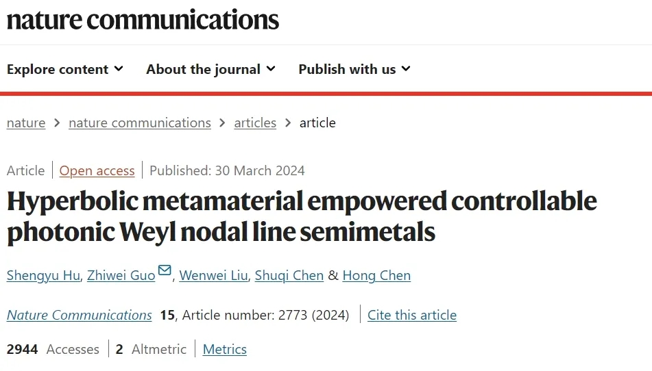 隨著拓撲能帶理論的發(fā)展,存在帶隙的拓撲絕緣體相引起了廣泛關(guān)注,推動了關(guān)于無帶隙的拓撲半金屬相的新一輪探索。物理科學與工程學院陳鴻課題組提出含雙曲超構(gòu)材料的一維光子晶體可以提供一個靈活的多功能平臺以實現(xiàn)Weyl節(jié)線半金屬(WNLS)的動力學演化和拓撲性調(diào)控。相關(guān)研究成果在線發(fā)表于《自然·通訊》(Nature Communications)。