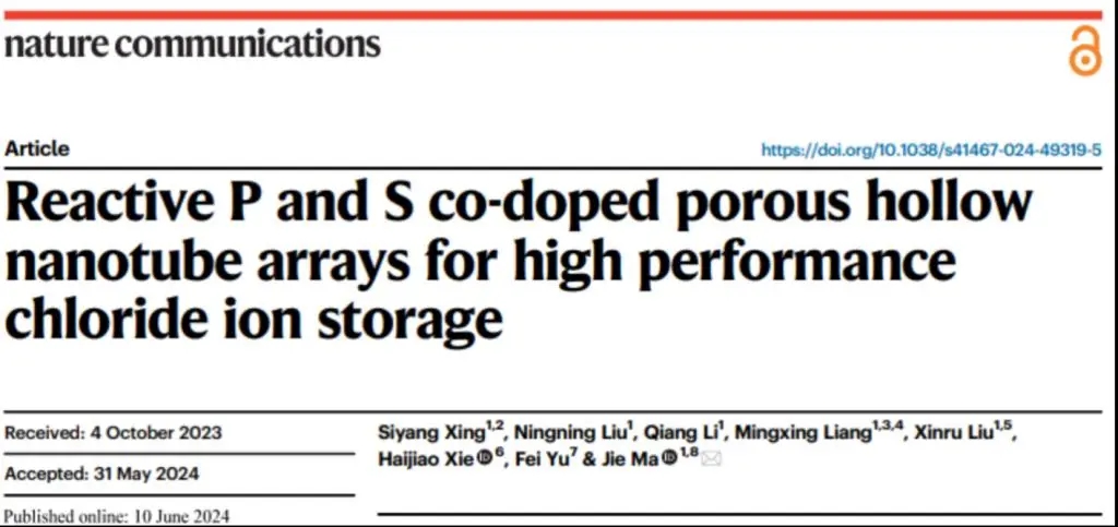 可持續(xù)清潔能源、水資源短缺和工業(yè)廢水處理需求促使了氯離子儲存分離技術(shù)的研究。環(huán)境科學與工程學院馬杰團隊通過摻雜一步實現(xiàn)高位點反應活性及高速離子擴散通道的建立,揭示了過渡金屬磷硫化物在電化學捕氯中強大的應用前景,也為脫氯陽極的設(shè)計提供普適性的策略和方法。該研究成果發(fā)表于《自然·通訊》(Nature Communications)。