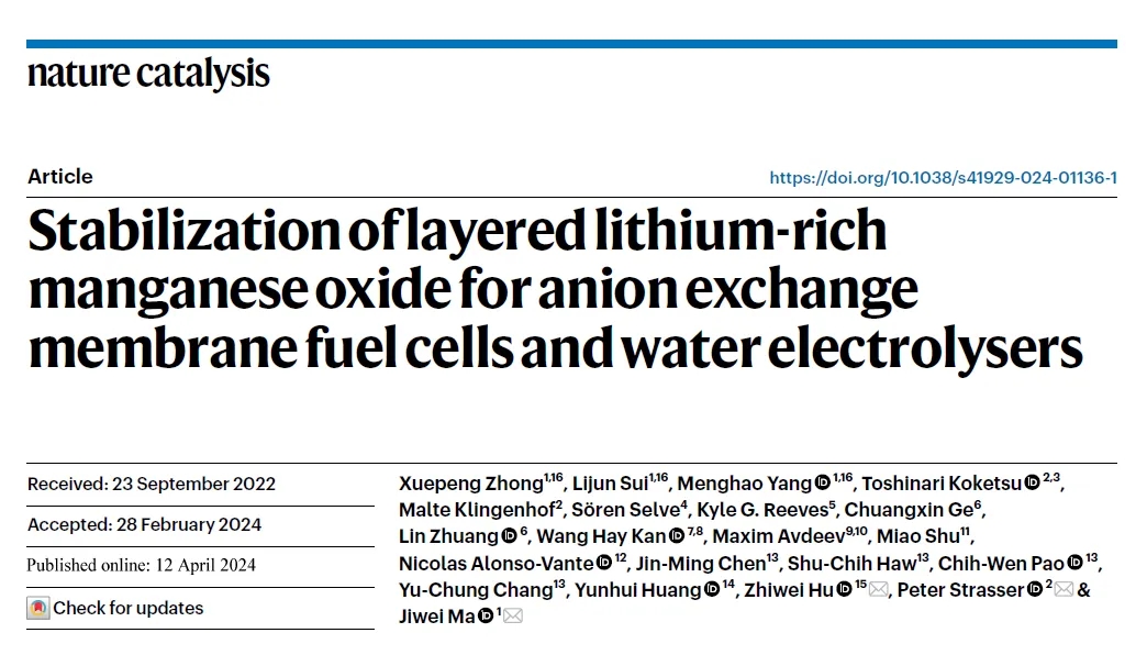 燃料電池是氫能的重要應用場景。目前,高性能的燃料電池主要采用高載量的鉑族金屬作為催化劑,導致成本相對較高,從而限制了其大規(guī)模應用。材料科學與工程學院馬吉偉團隊提出了一種全新的解決方案,通過優(yōu)化富鋰錳基氧化物的電子結(jié)構(gòu)和性能,來替代資源稀缺且昂貴的鉑族催化劑。該研究成果在線發(fā)表于《自然·催化》(Nature Catalysis)。