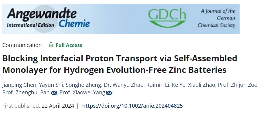水系鋅離子電池是有前途的下一代儲能設(shè)備,但存在析氫反應(HER)和鋅負極表面復雜的副反應等問題。材料科學與工程學院新能源材料化工團隊(潘爭輝、楊曉偉)通過在Ti3C2Tx(MXene)基底上錨定離子液體陽離子(BMIM+)構(gòu)建了自組裝的單分子層(SAM),以實現(xiàn)無HER的穩(wěn)定鋅負極。相關(guān)研究成果發(fā)表于《德國應用化學》(Angewandte Chemie International Edition)。