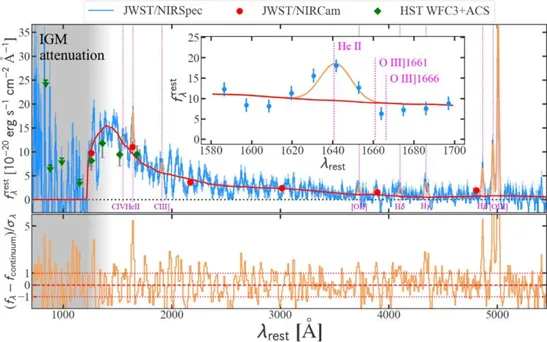 RX J2129-z8He II的JWST光譜。插圖顯示He II 1640譜線