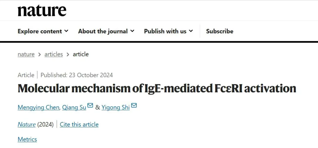 北京時(shí)間2024年10月23日23時(shí),西湖大學(xué)未來產(chǎn)業(yè)研究中心、生命科學(xué)學(xué)院、西湖實(shí)驗(yàn)室施一公團(tuán)隊(duì)和深圳醫(yī)學(xué)科學(xué)院宿強(qiáng)團(tuán)隊(duì)合作在《自然》(Nature)上發(fā)表了題為《IgE介導(dǎo)的高親和力受體激活的分子機(jī)制》的研究論文。