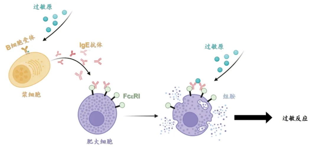 IgE介導(dǎo)的過敏反應(yīng)概略示意圖
