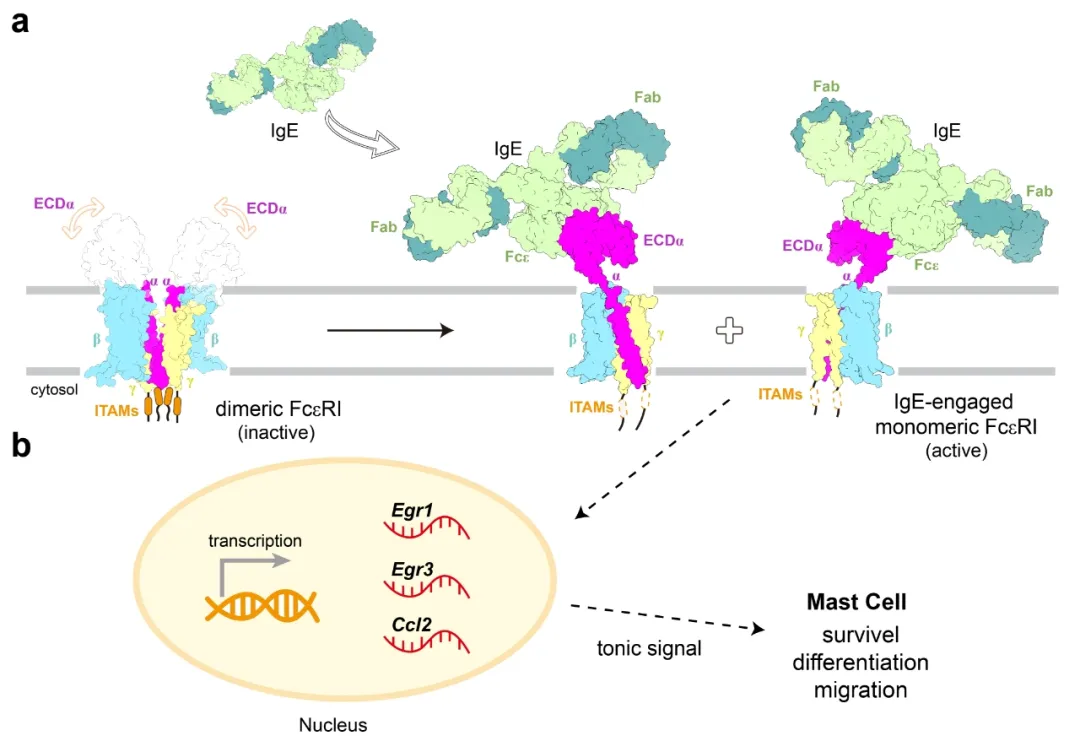 這一發(fā)現(xiàn)不僅為理解IgE-FcεRI在過敏反應(yīng)中的關(guān)鍵機(jī)制提供了重要見解,也為開發(fā)新型抗過敏療法開辟了新的方向。