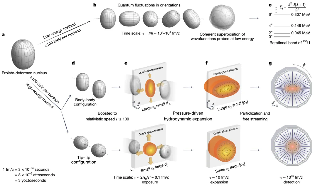 這項突破不僅對研究極端物態(tài)夸克膠子等離子體的性質(zhì)至關(guān)重要,還為跨能量尺度研究原子核結(jié)構(gòu)信息提供了新穎和獨立的實驗測量手段。相關(guān)研究成果于北京時間11月7日以“Imaging Shapes of Atomic Nuclei in High-Energy Nuclear Collisions”為題發(fā)表于《自然》(Nature)主刊。Nature同期在“新聞和觀點” (News & Views)、 “博客” (Podcast) 特評專欄等對該文進(jìn)行亮點介紹和重點推介。