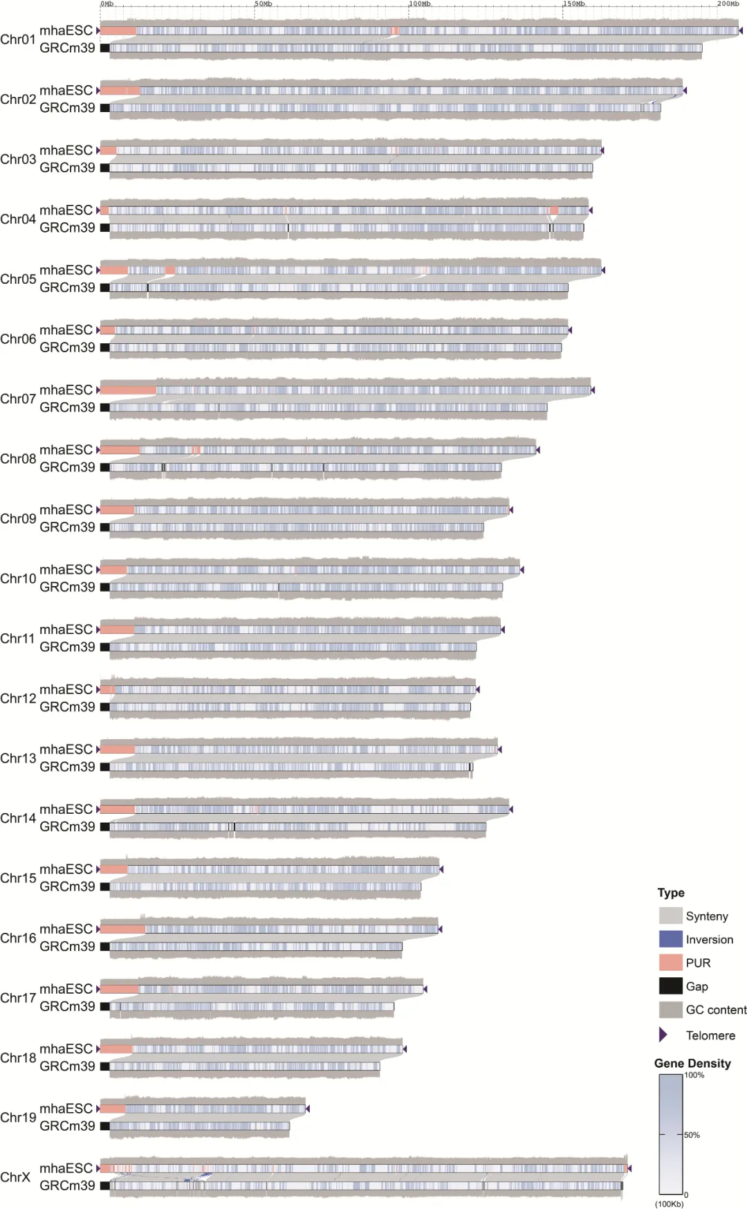 mhaESC基因組與先前參考基因組的共線性比對結(jié)果