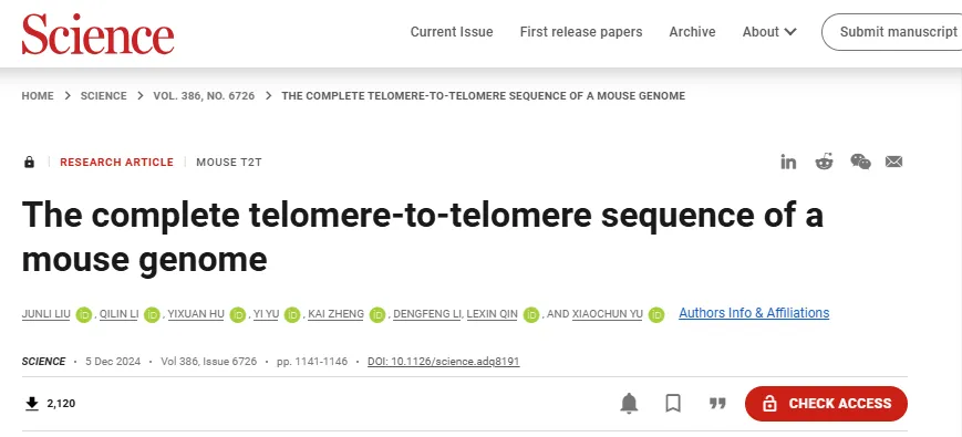 12月6日,《科學》(Science)雜志在線發(fā)表了西湖大學生命科學學院、西湖實驗室俞曉春團隊最新成果“完整的端粒到端粒小鼠參考基因組序列(The complete telomere-to-telomere sequence of a mouse genome)”,報道了該團隊在解析小鼠參考基因組方面取得的重要突破。這意味著人類歷史上第一次看清小鼠基因組DNA全貌。