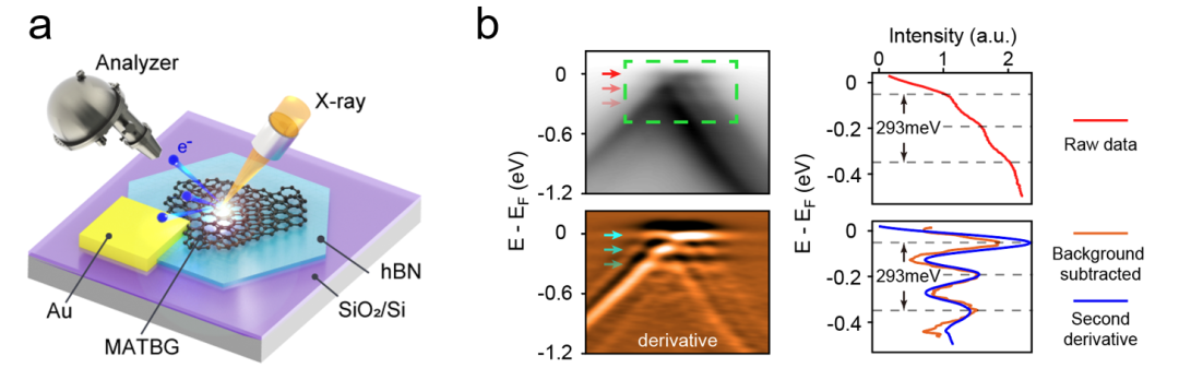 圖1 a.Nano-ARPES測(cè)量魔角石墨烯器件示意圖;