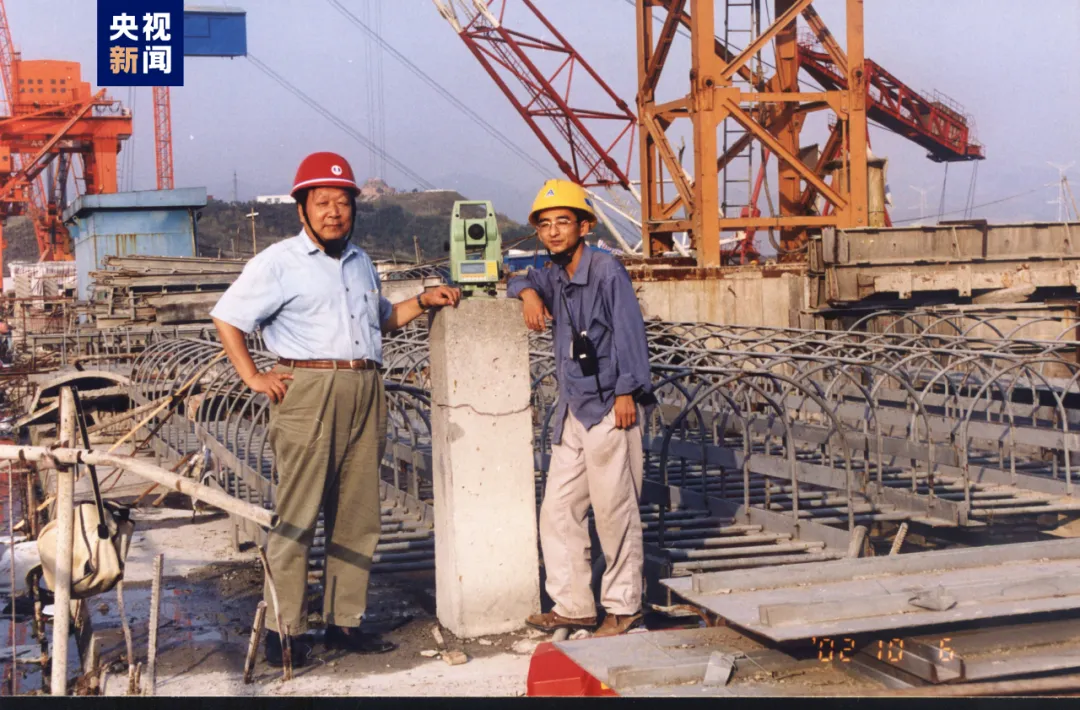 △2002年,李德仁(左一)在三峽大壩建設工地開展測繪遙感工作